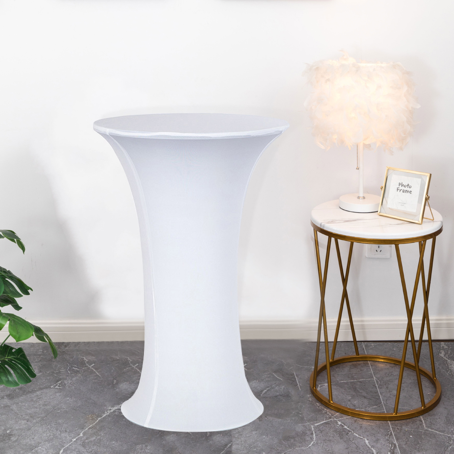 卸売りバーの高い足のバーの弾力性のテーブルクロスの宴会のテーブルクロスのカクテルの円卓のカバーの白い弾力性のテーブルのカバー