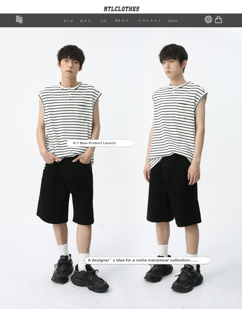 MTLCLOTHES メンズウェア | 韓国風クラシックオリジナルカラーのストレートミッドウエスト五分丈カジュアルウォッシュドデニムショートパンツ
