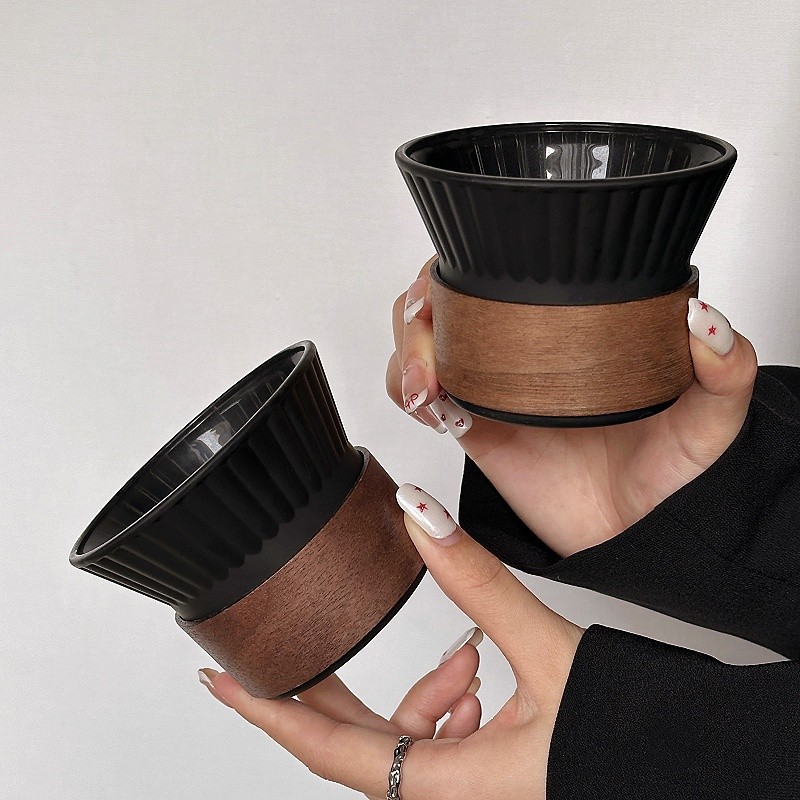 高颜値シンプル曜黒耳コーヒーカップパーマ防止カップフロストグラスラテカップ家庭用水カップ