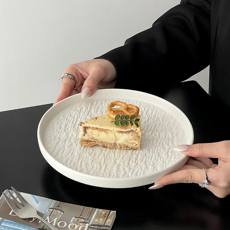 高级感陶瓷蛋糕盘家用精致石纹西餐盘意面盘创意牛排沙拉盘圆盘子