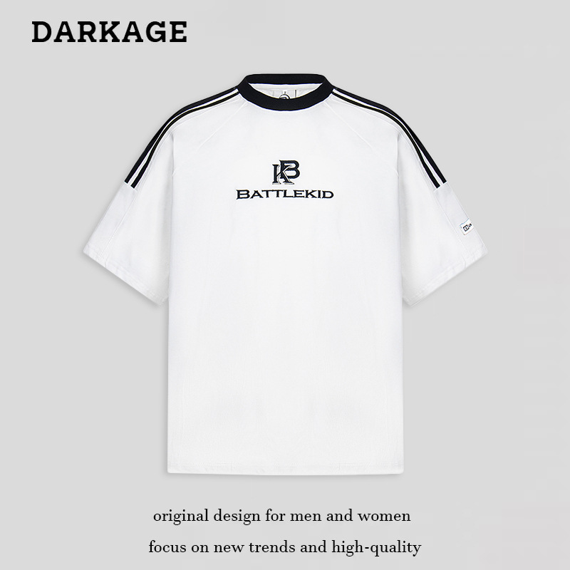 2025新型アメリカレトロ趣味マジックテープ半袖tシャツ男女夏カップルカジュアル重ポンド