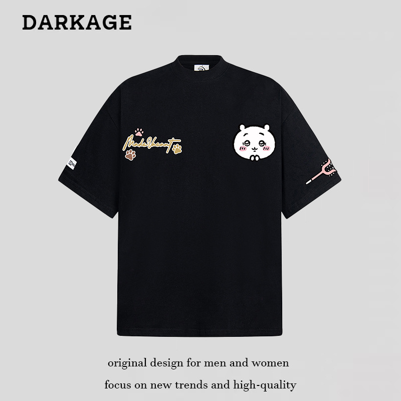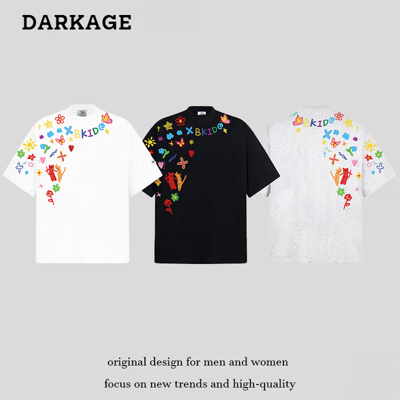 2025新型アメリカ潮牌創意アニメ落書きプリント半袖男女tシャツ高街カップル丸襟半袖