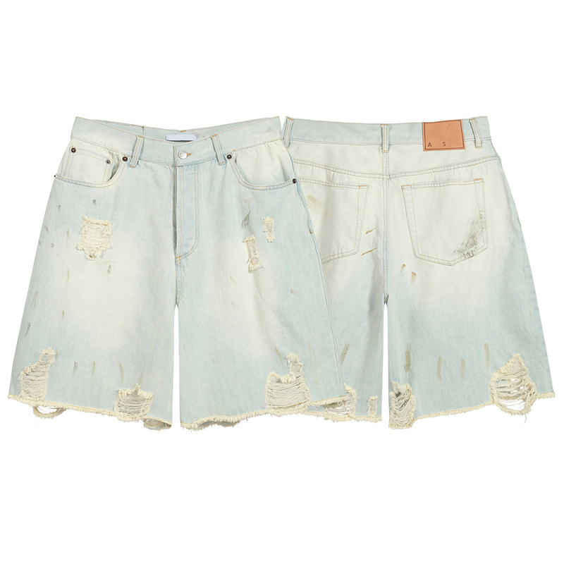 2025年新作 シンプル トレンド アメリカン パリ風 ウォッシュ加工 リップド エッジ スリーストライプス ストライプ メンズ レディース デニム ショートパンツ