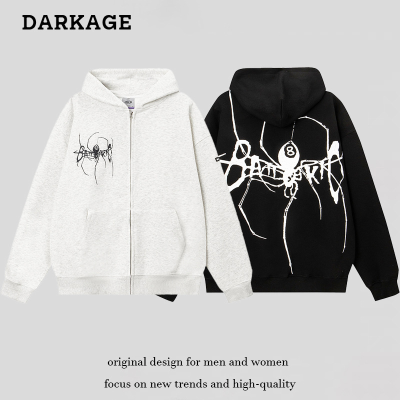 アメリカの高街の大きな蜘蛛の発泡プリントと帽子のパーカー