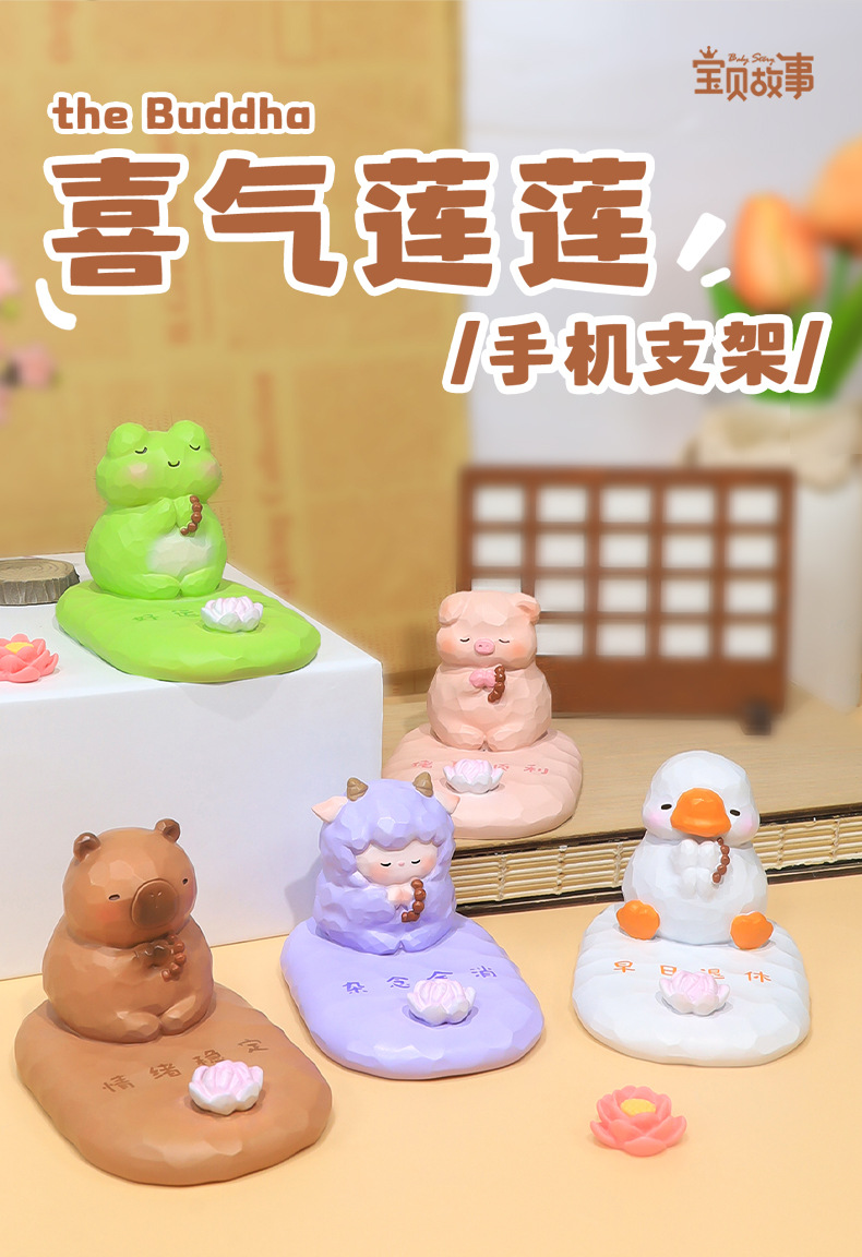 かわいい喜気蓮の携帯電話のスタンドの置物の仏陀系の家庭の樹脂の置物のデスクトップのタブレットの携帯電話のスタンドの卸売り