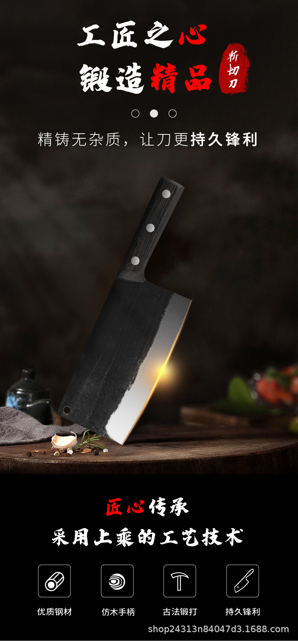家庭用包丁の木の柄を厚くして骨を切って包丁を鍛えて包丁を鍛えます。