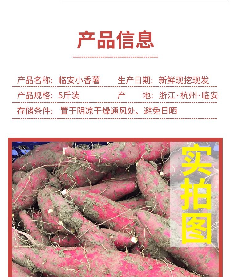 正宗临安天目山小香薯5斤板栗红薯沙地黄心手指3新鲜蔬菜小番薯10