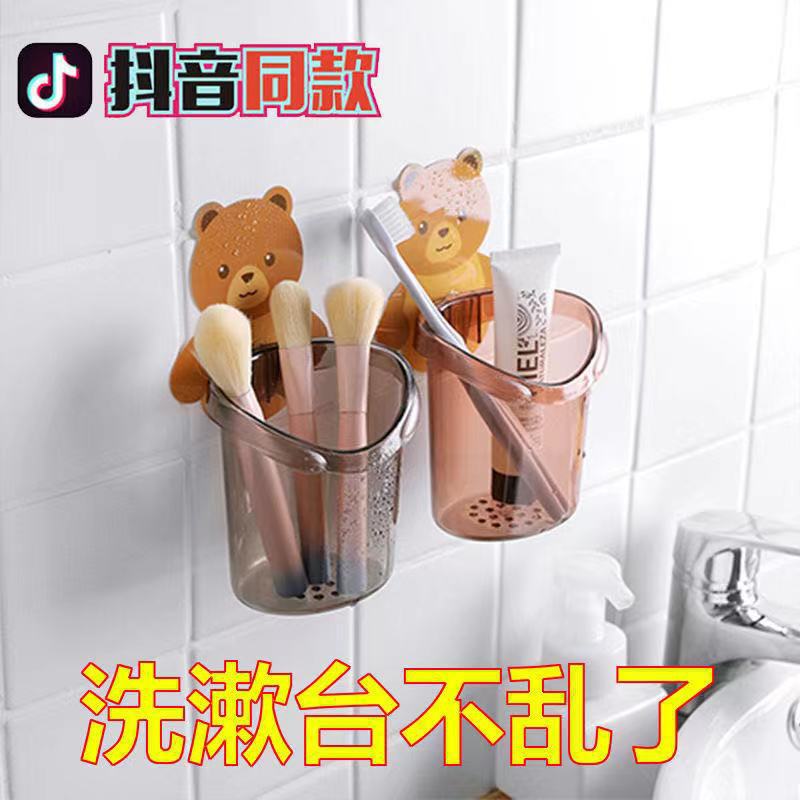 クマの歯ブラシカップ浴室収納ラックパンチングなしうがい薬カップ歯磨き粉粘着ラック漫画収納歯ブラシホルダー