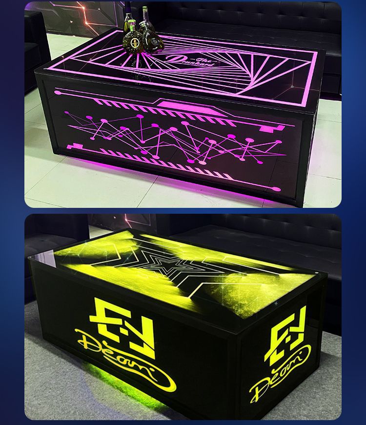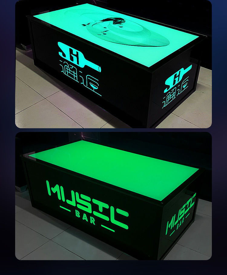 KTV茶何発光テーブル夜場バートランクソファーカード専用強化ガラス面ロゴ