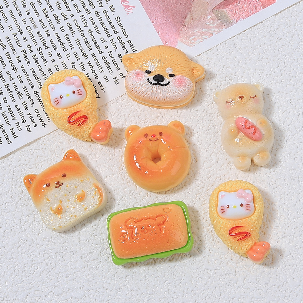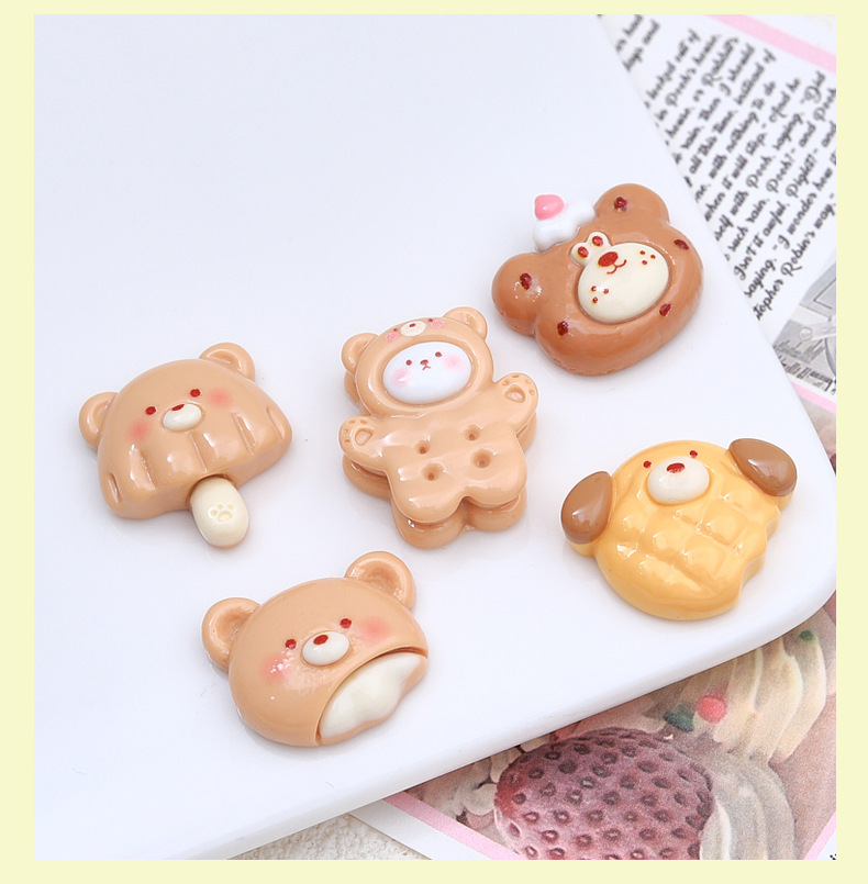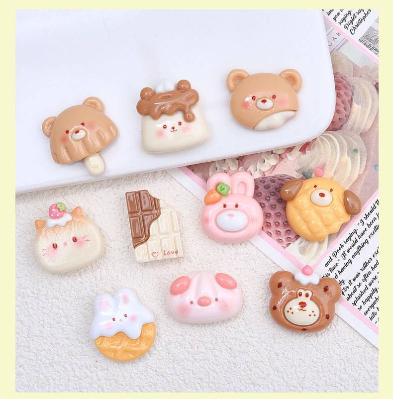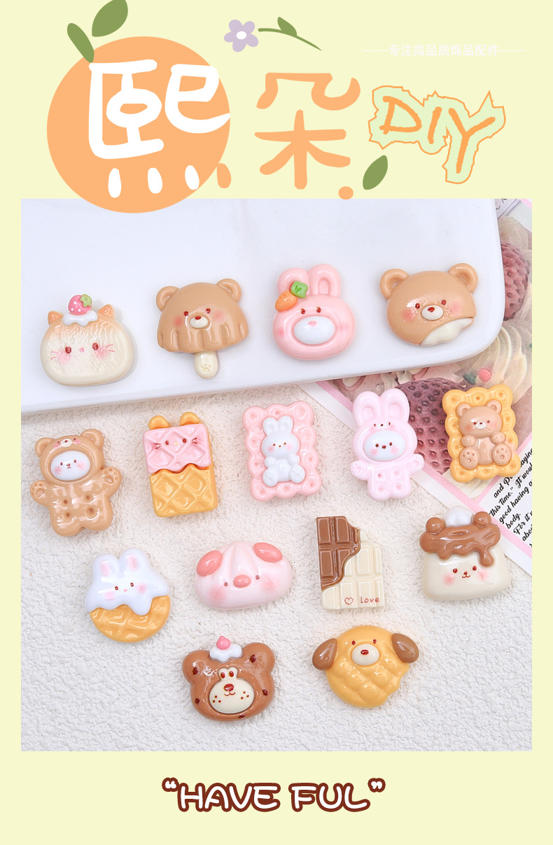 樹脂アクセサリーアニメdiyクリームゴムヘアピン穴靴ボタンアクセサリー装飾模様熊パン食遊び