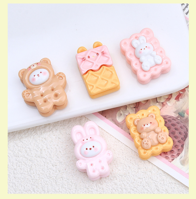 ウサギのビスケットは食べて遊んで漫画のクリームのゴムは穴の靴のボタンの材料の樹脂の部品のdiyのアクセサリのヘアピンを飾ります。