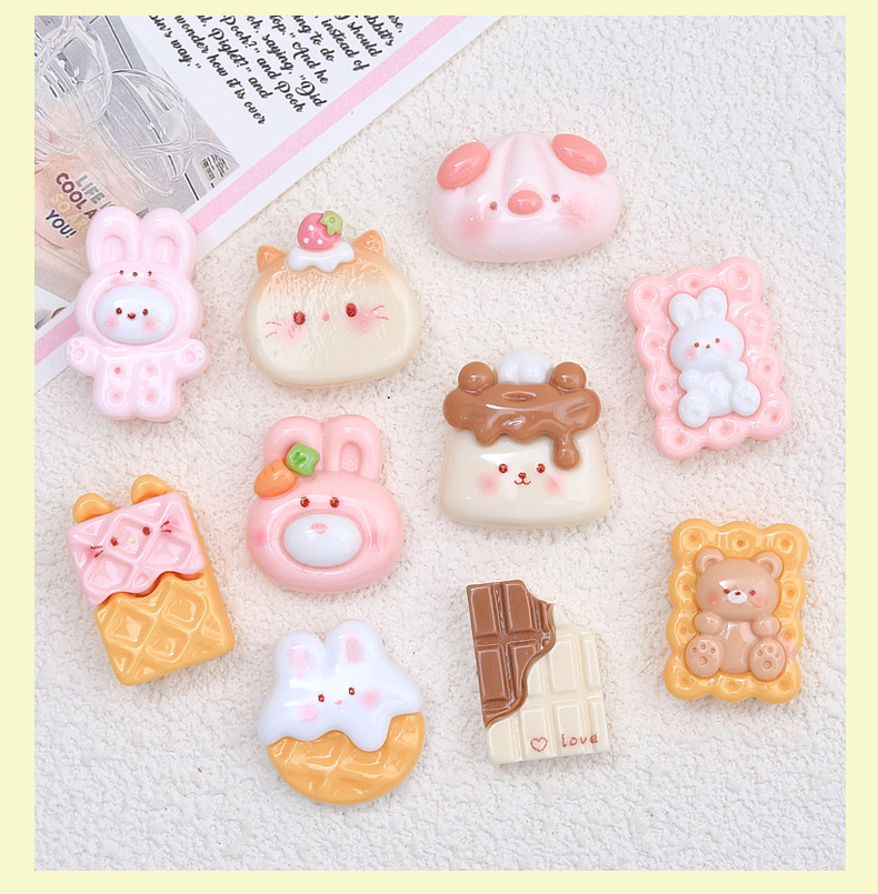 アニメ動物食游シリーズdiyアクセサリークリームゴムアクセサリーヘアピン穴靴バックル装飾樹脂アクセサリー