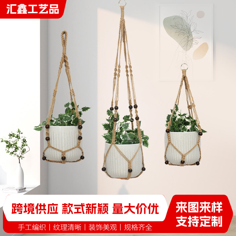 組み合わせ型底なし植木鉢ネットポーチ 黄麻織り装飾ガーデニングバルコニー植物吊り下げロープタッセルハンギングバスケットネットポーチ