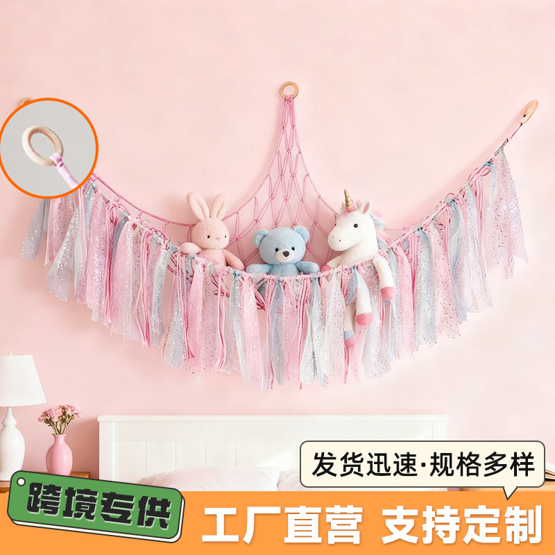 クロスボーダー手織り綿ロープ三角形おもちゃネットバッグインスタイルタッセル壁装飾ぬいぐるみ子供部屋の装飾