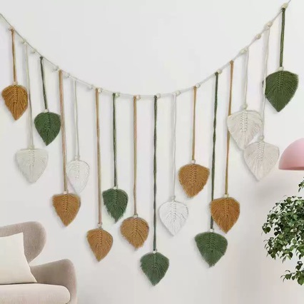 厳选アイデア手编みコットンロープ叶タペストリーボヘミアン风编みタペストリー装饰壁挂け壁挂け饰り