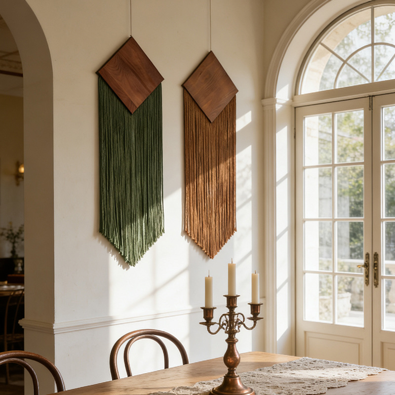 菱形木板流苏挂毯手工制作波西米亚墙面装饰壁挂民宿玄关装饰挂毯
