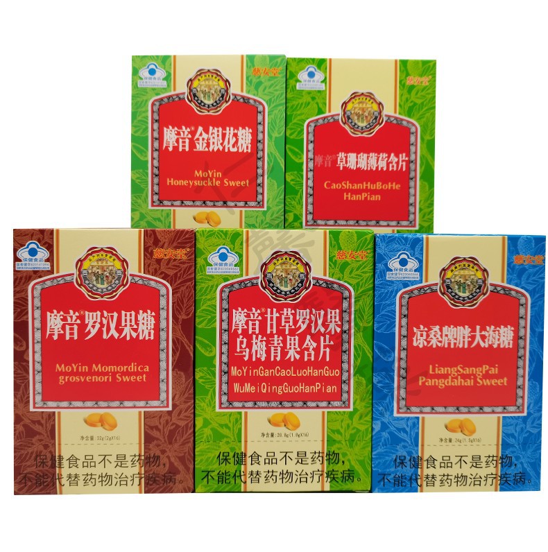 摩音金銀花草サンゴ咽頭糖含有片清涼ミント糖多味16粒/箱