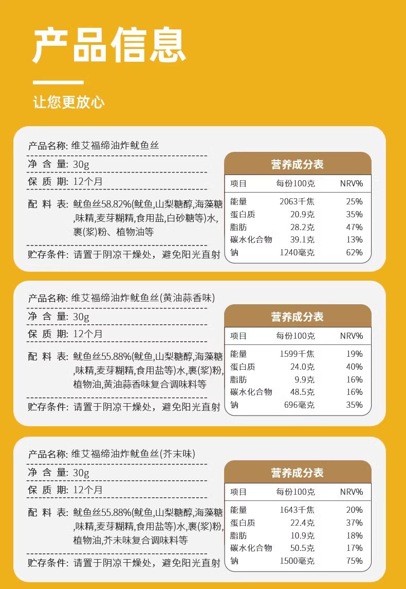 維艾福締揚げイカ糸30g原味マスタード香ショートニング炭焼きイカ条つまみ海鮮スナック品