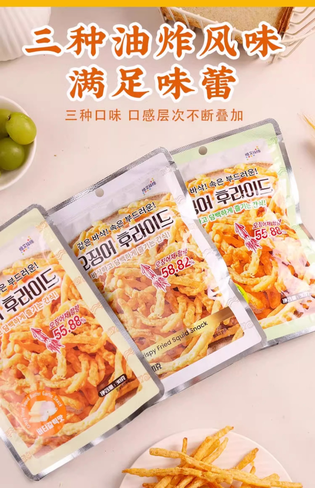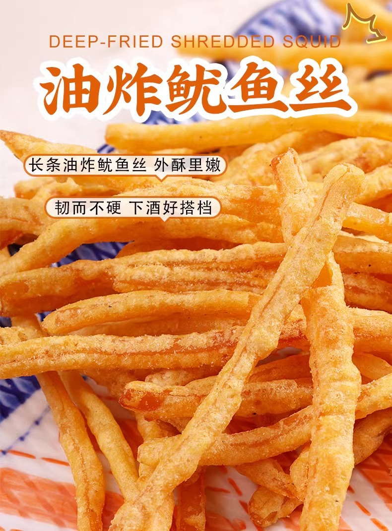 维艾福缔油炸鱿鱼丝芥末蒜香黄油味网红休闲零食天妇罗鱿鱼条小吃