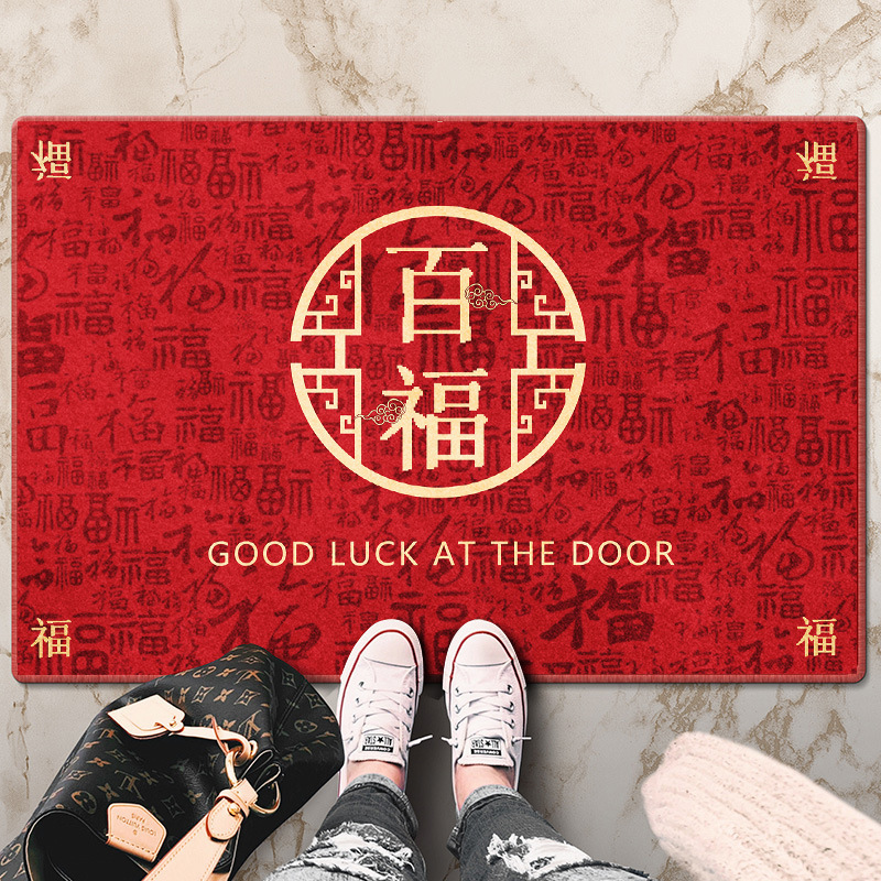 丸い赤いフロアマット「ようこそ」入り、出入り口用安全マット、玄関マット、中国風、新中式