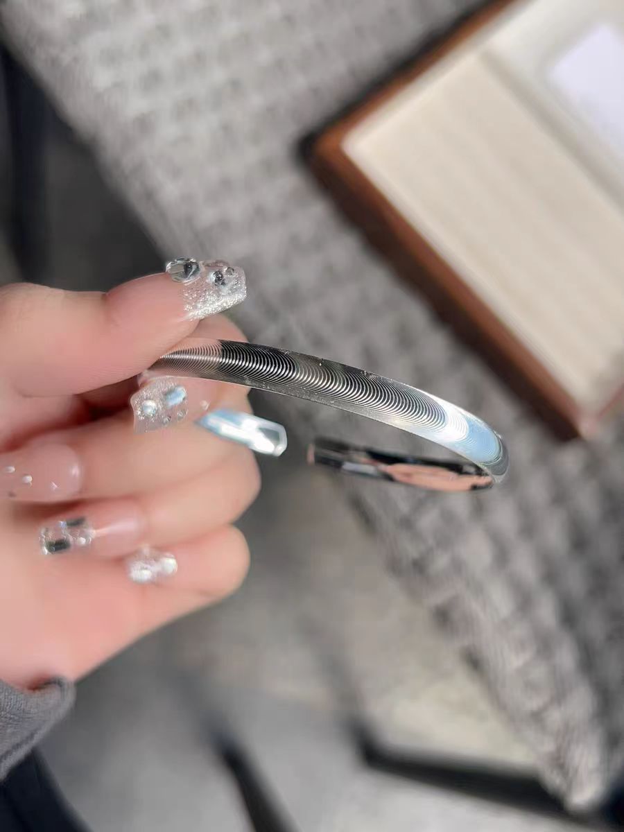 足银9999猫眼拉丝银手镯女纯银实心时尚百搭银镯子小众轻奢送女友