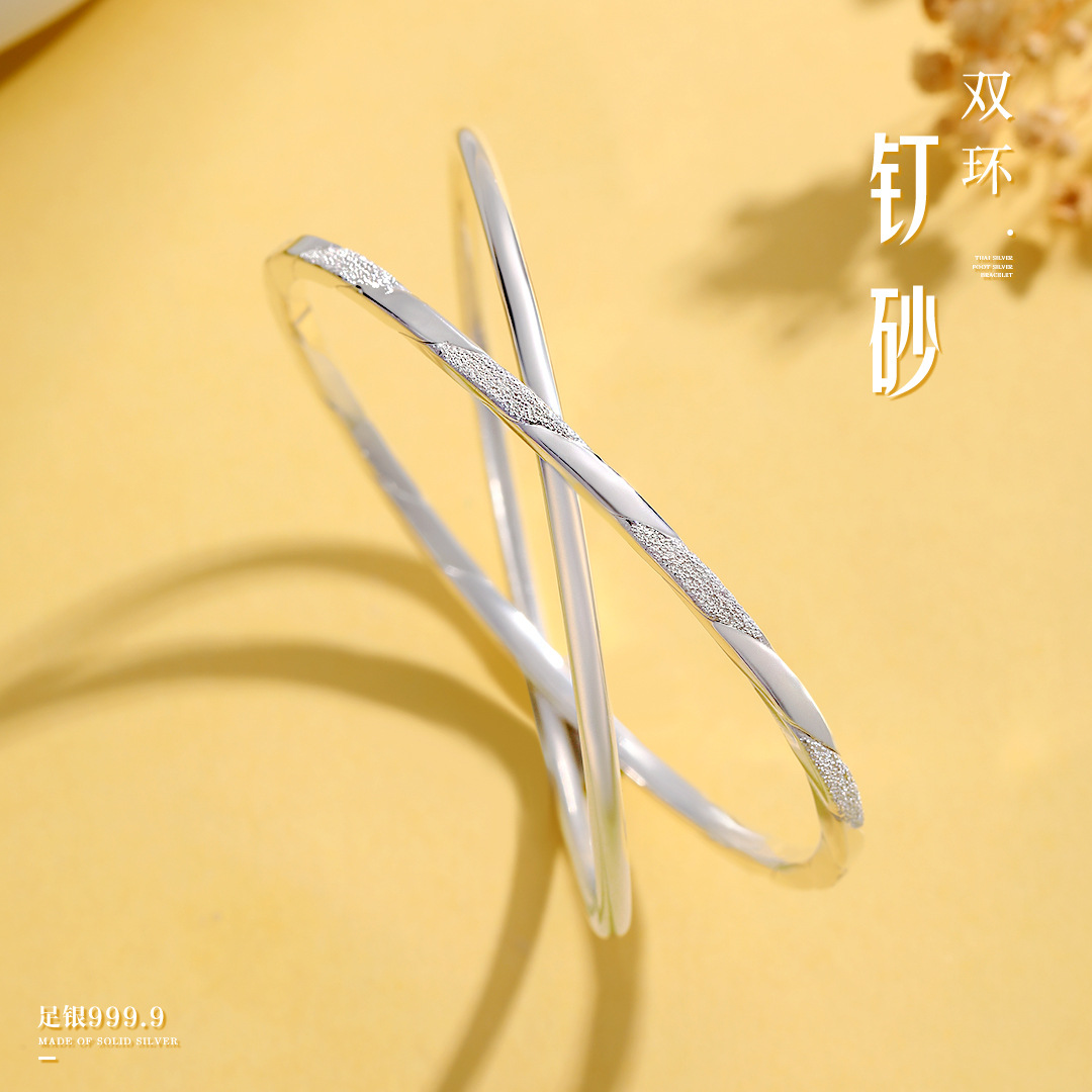 モビウス足銀9999純銀ブレスレット双環四方ツイストピン砂ブレスレット小衆中実ブレスレットプレゼント