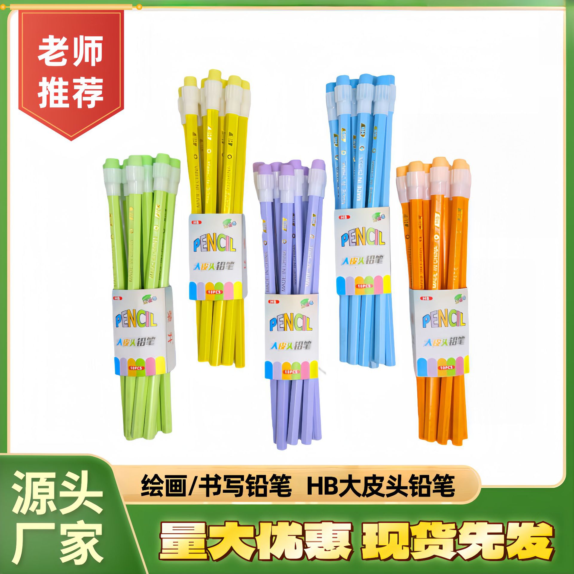 马卡龙色HB大皮头铅笔高颜值小学生幼儿绘画书写原木铅笔跨境文具