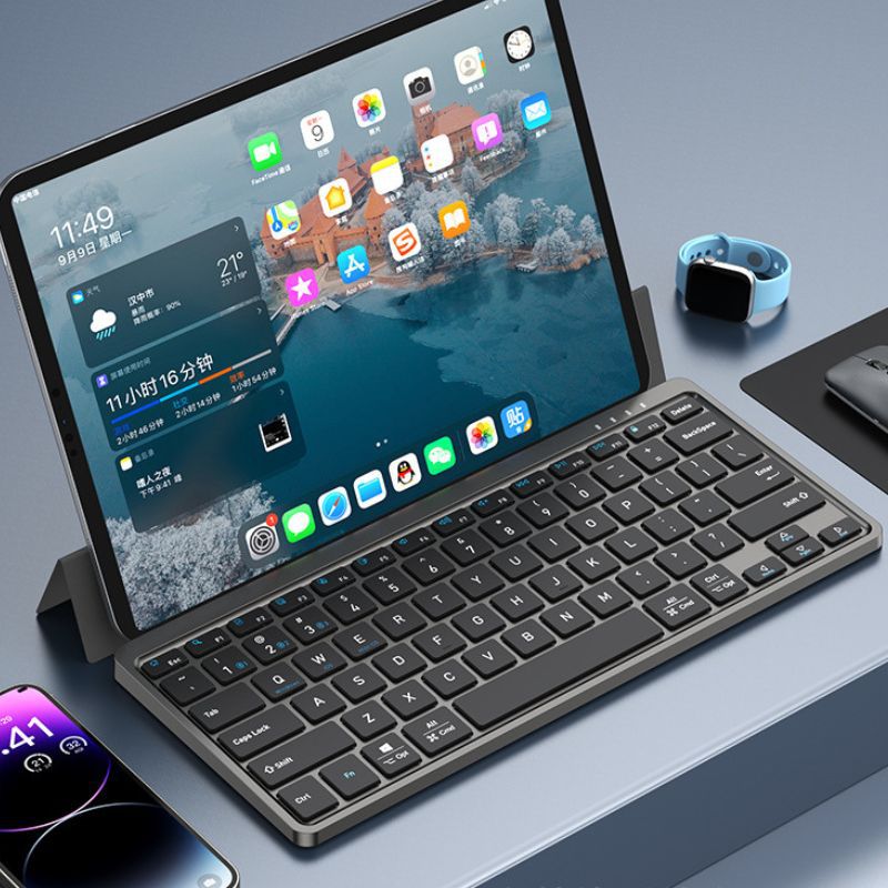 Product features: ultra -thin mini shape, simple and stylish appearance design, convenient and easy to carry, X -ray scissors feet wireless three Bluetooth channels, connecting three devices at the same time, the mode switching operation is simple. Tablet bracket, Type-C charging socket, built-in 180mAh polymer battery ~