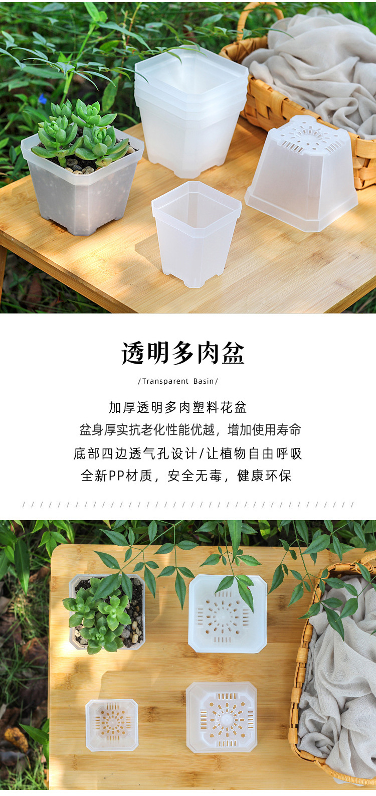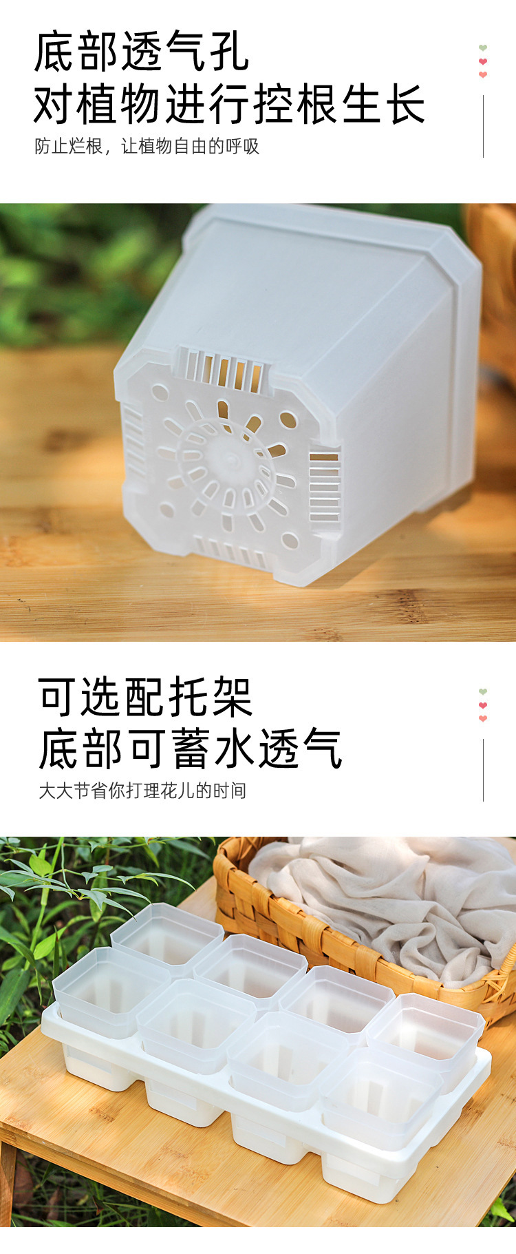 熱売透水通気八角盆小白方多肉植木鉢プラスチック方形植物葉挿し育苗盆黒方盆