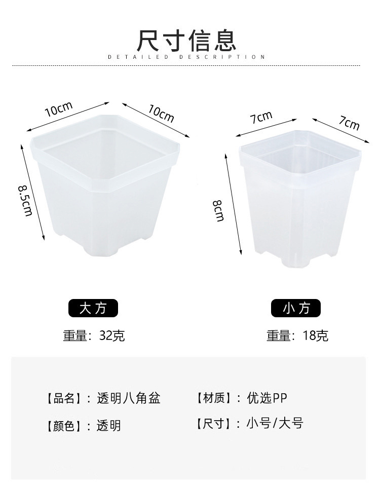 7*7cm小白方多肉植木鉢プラスチック植木鉢厚手小方盆多肉植物トランペット植木鉢育苗カップ