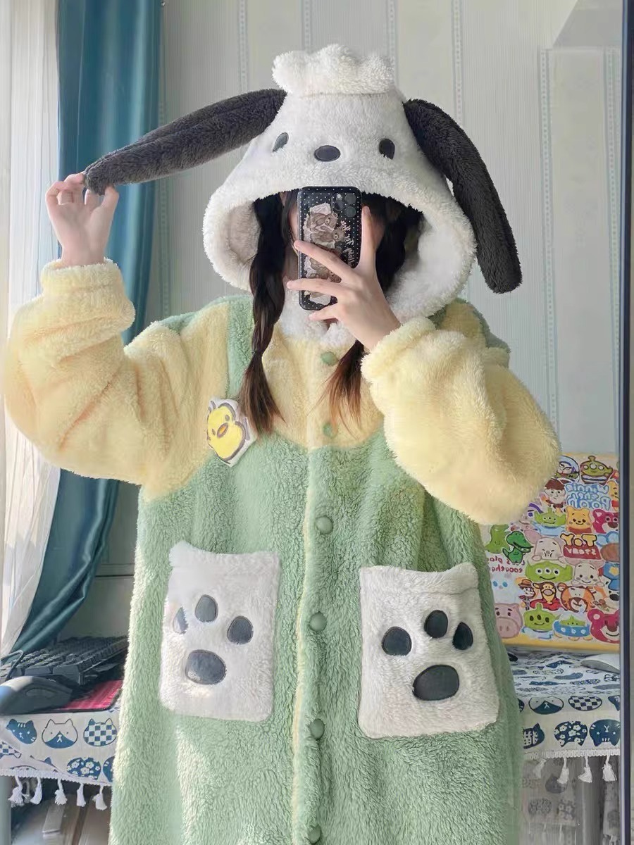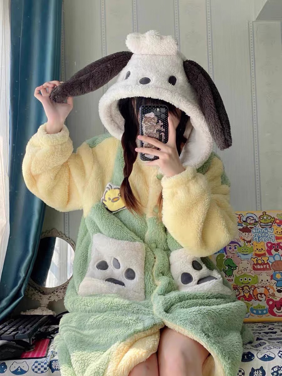 特価!!可愛いシナモロール風コーラルフリースパジャマ レディース 2025年新作 春秋冬用 厚手バスローブ