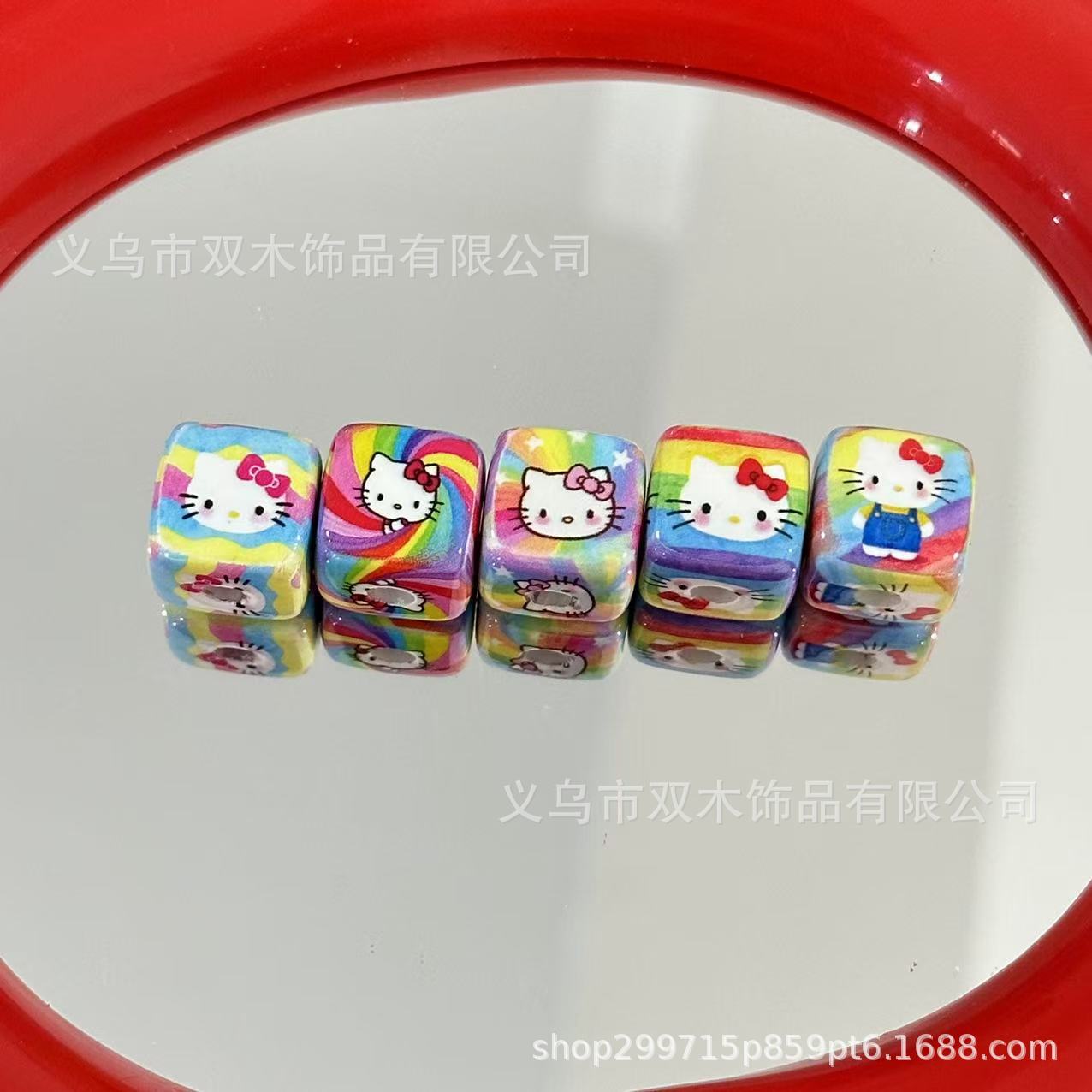 14mmプリント虹色kt猫ブロックビーズdiy車のブレスレット