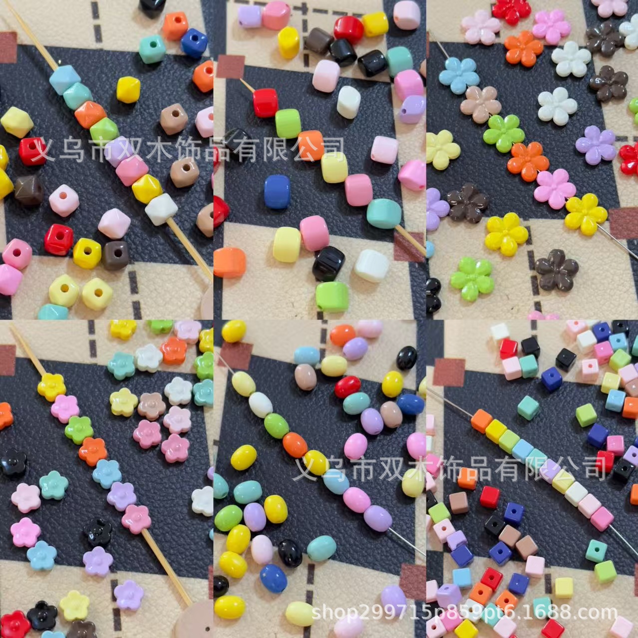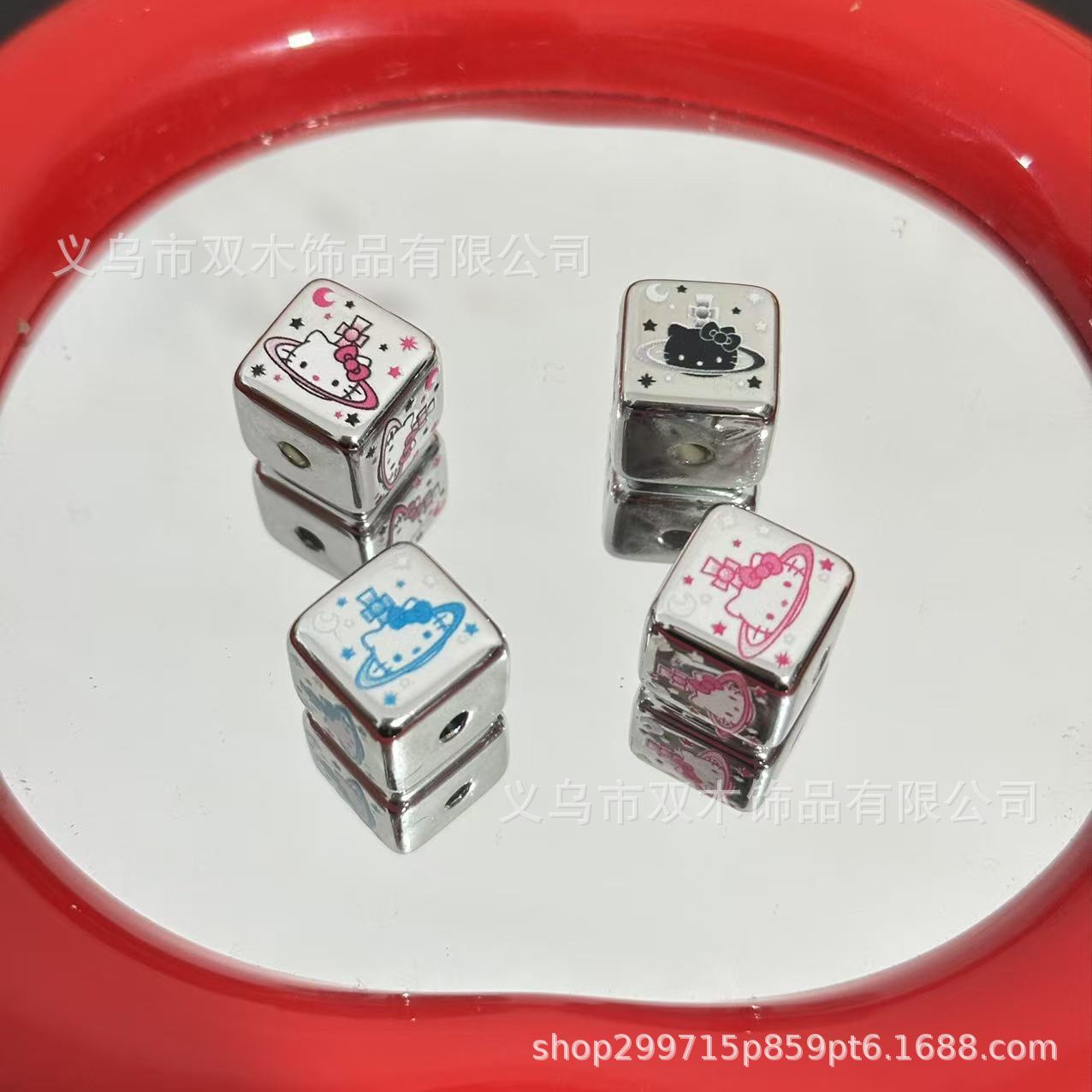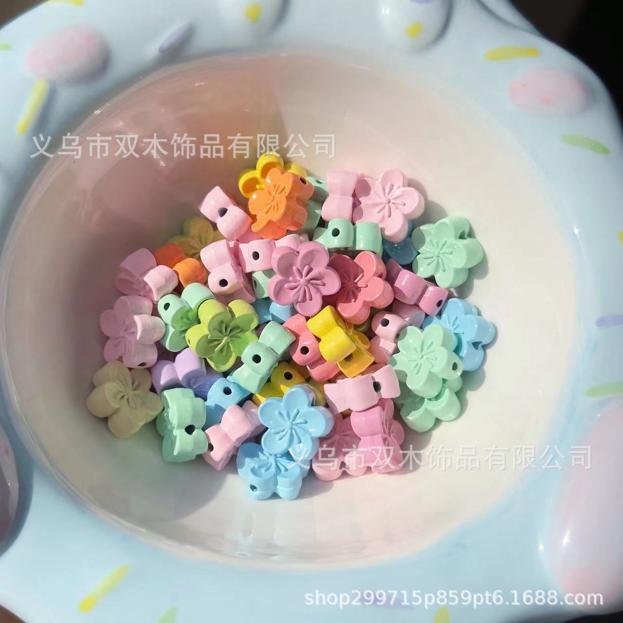 彩色烤漆米粒方块小花亚克力串珠 diy手链手机链包挂车挂饰品配件