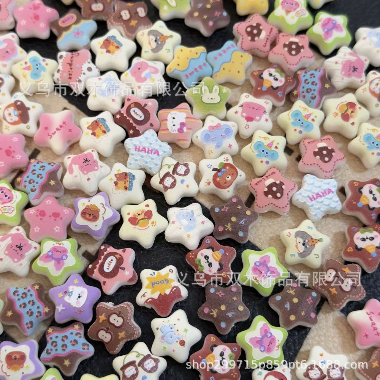 14mm印花浮雕卡通图案小星星串珠 diy手机链包挂车挂钥匙扣配件