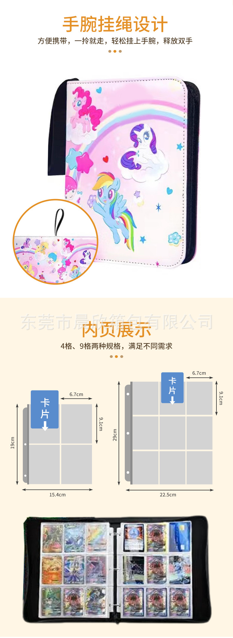 工場直供4宮格9格ポニーポーリーカード冊純色ファスナー収蔵冊集バインダーカード収納冊包