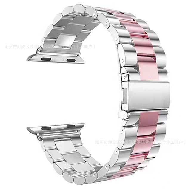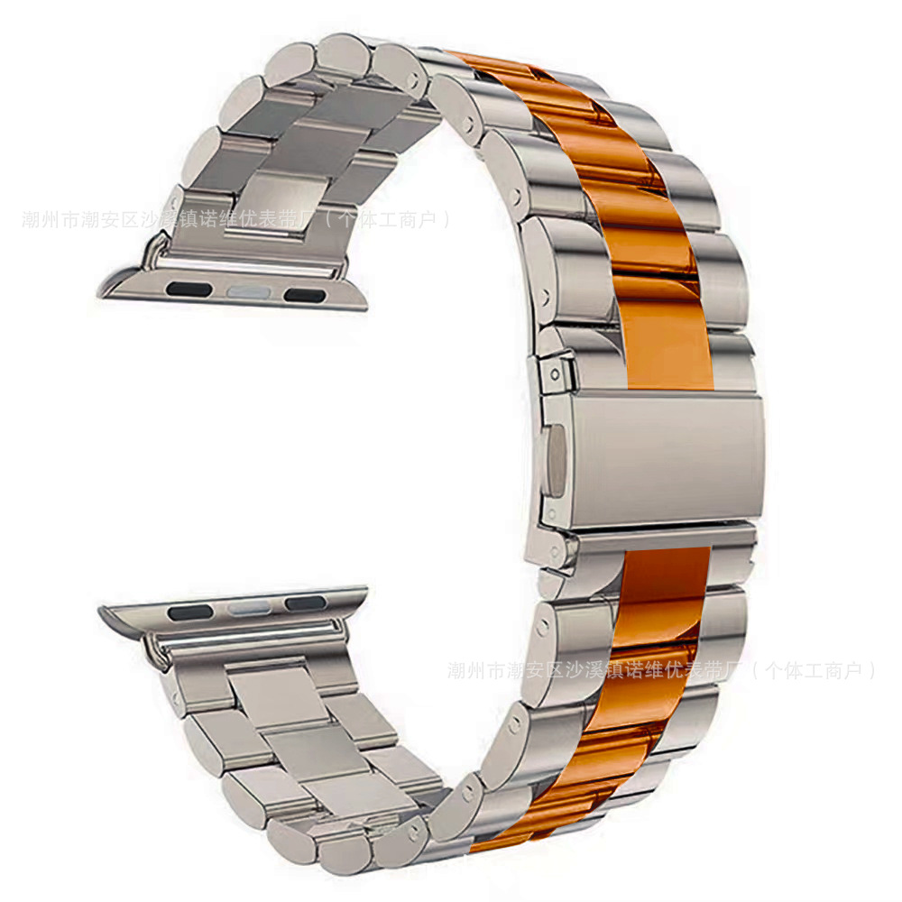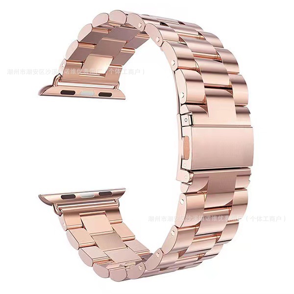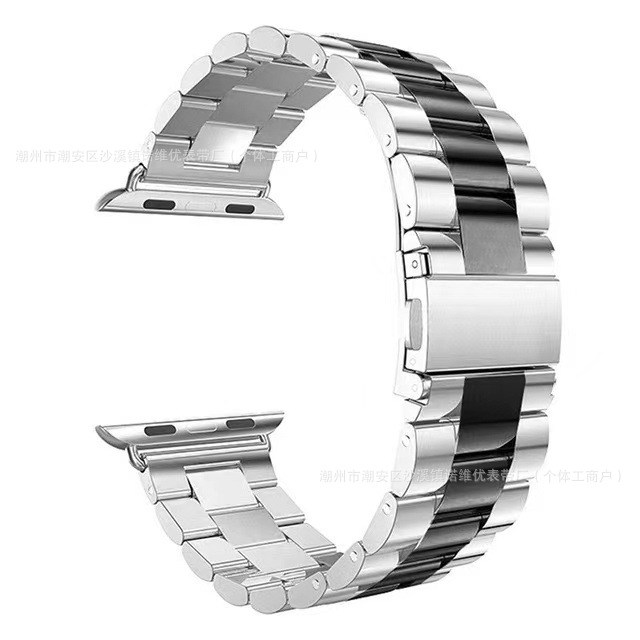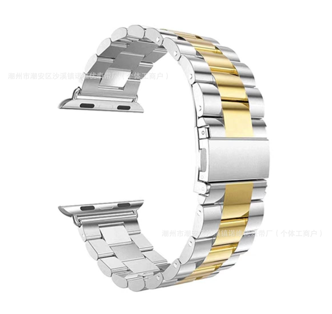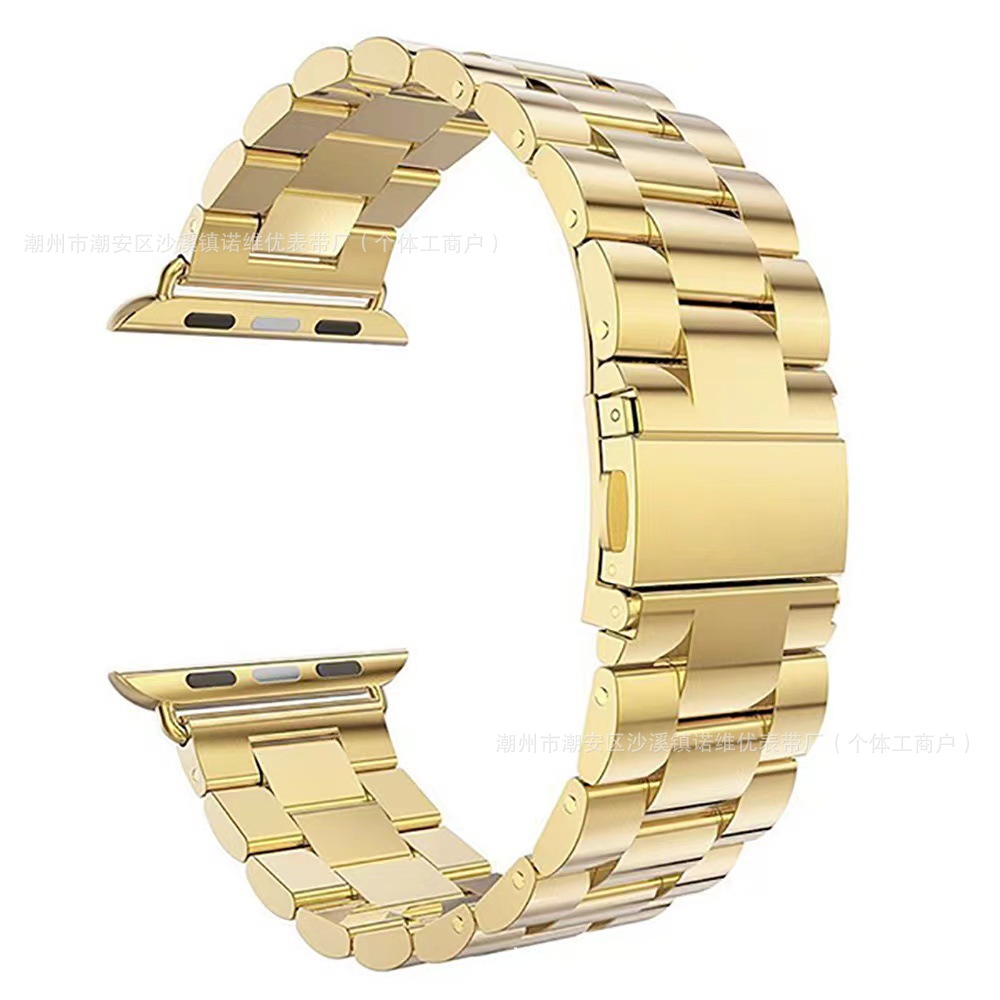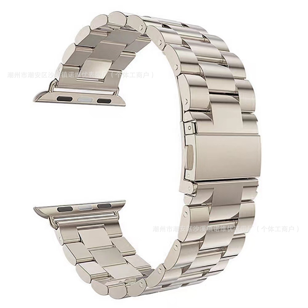 适用苹果手表带三珠不锈钢金属iwatch表带applewatch三星华为gt56