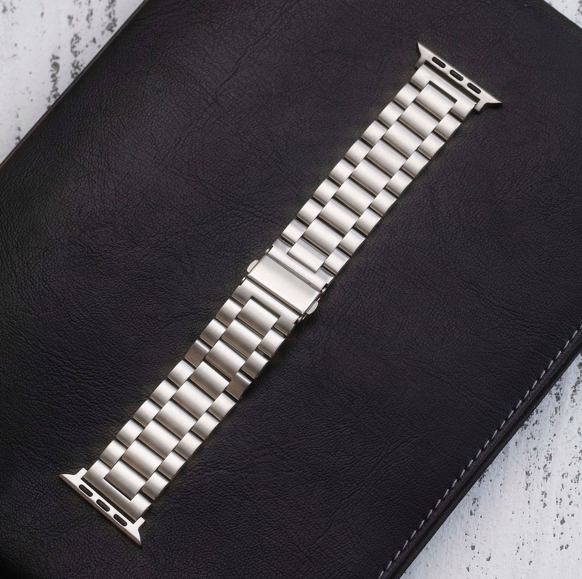 Apple Watch用三連ステンレス製時計バンド、メタル製両側プッシュボタン式バックル付きスチールバンド
