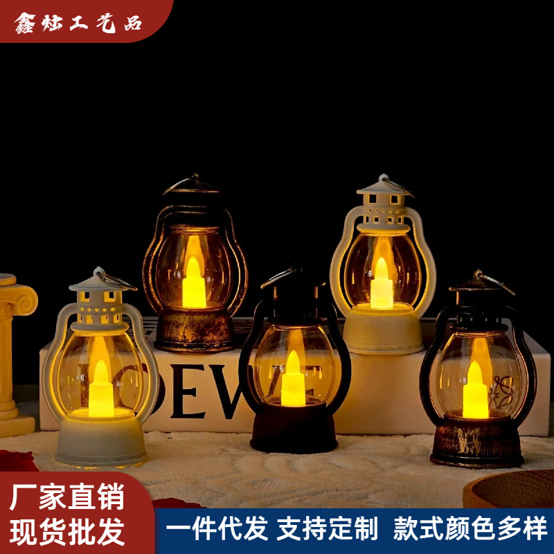 复古电子蜡烛工艺风灯led灯露营灯摆件装饰气氛灯万圣节手提灯