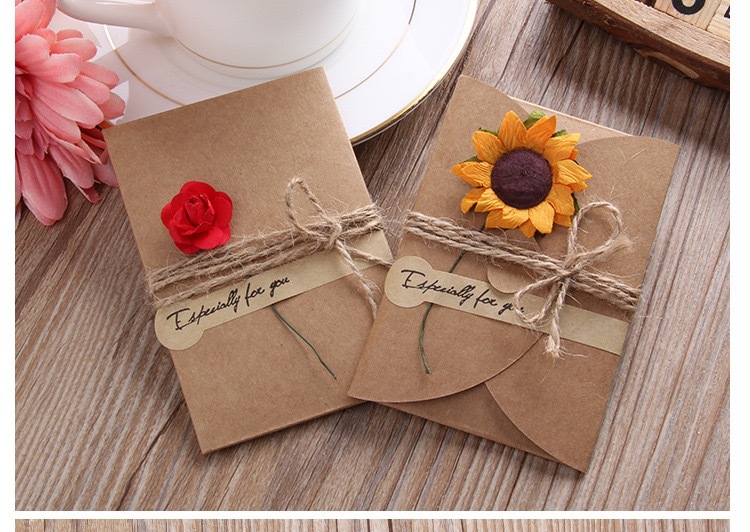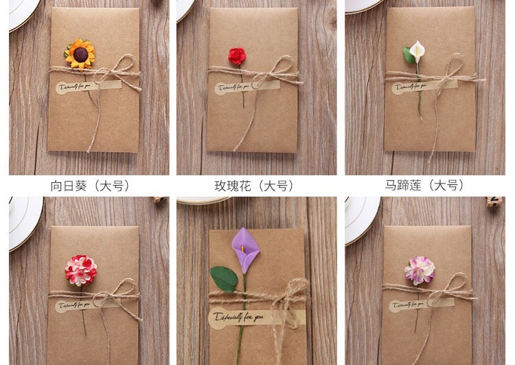 クリエイティブdiyレトロ牛革手作りドライ花グリーティングカードアマゾン恋人教師の日新年祝福花カード