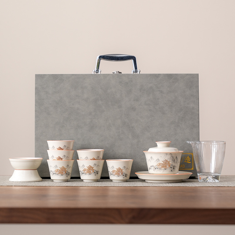 羊脂玉工夫茶器ギフトボックスセット家庭用セット白磁蓋碗高級ビジネスお土産プレゼント