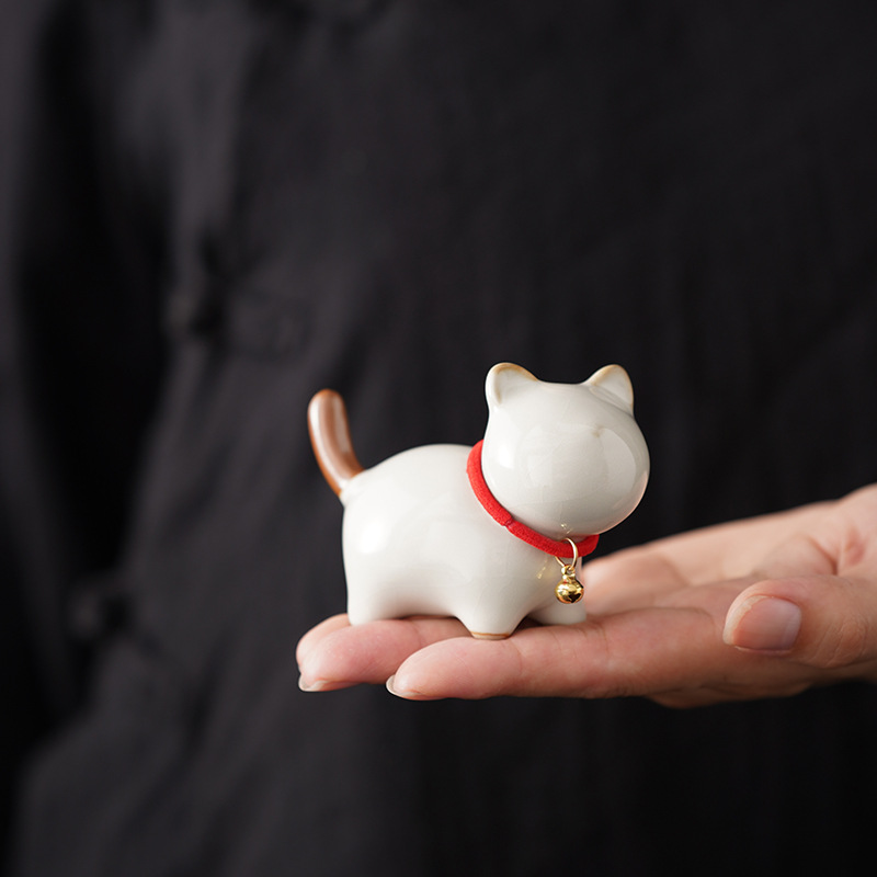 汝窑陶瓷可爱小猫咪摆件创意小猪茶宠室内桌面饰品茶玩茶具配件