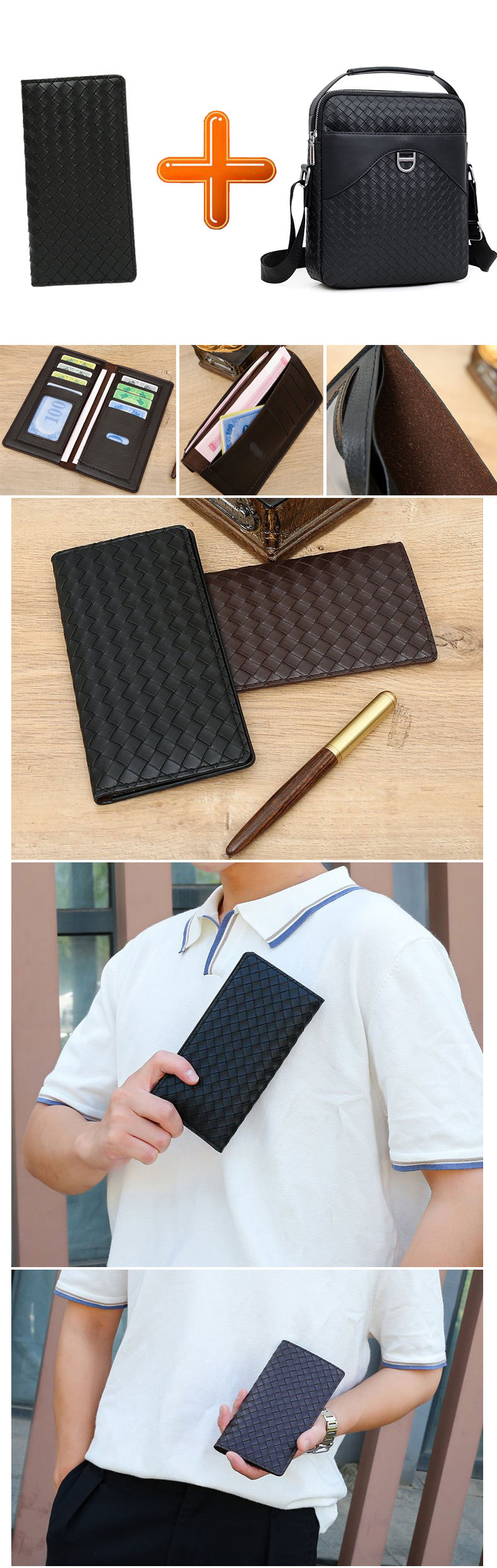 メンズ携帯電話バッグチェック柄新品長財布鍵タバコ収納小銭入れハンドバッグ街頭潮持ちメンズバッグ