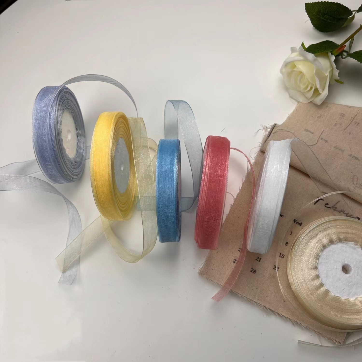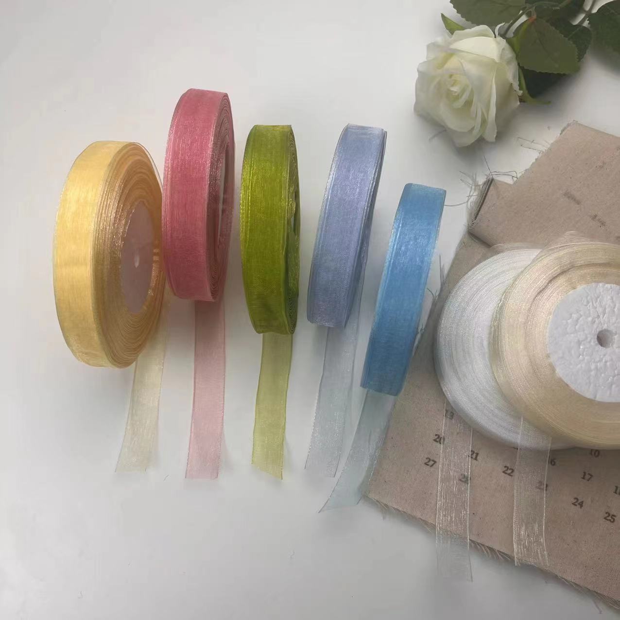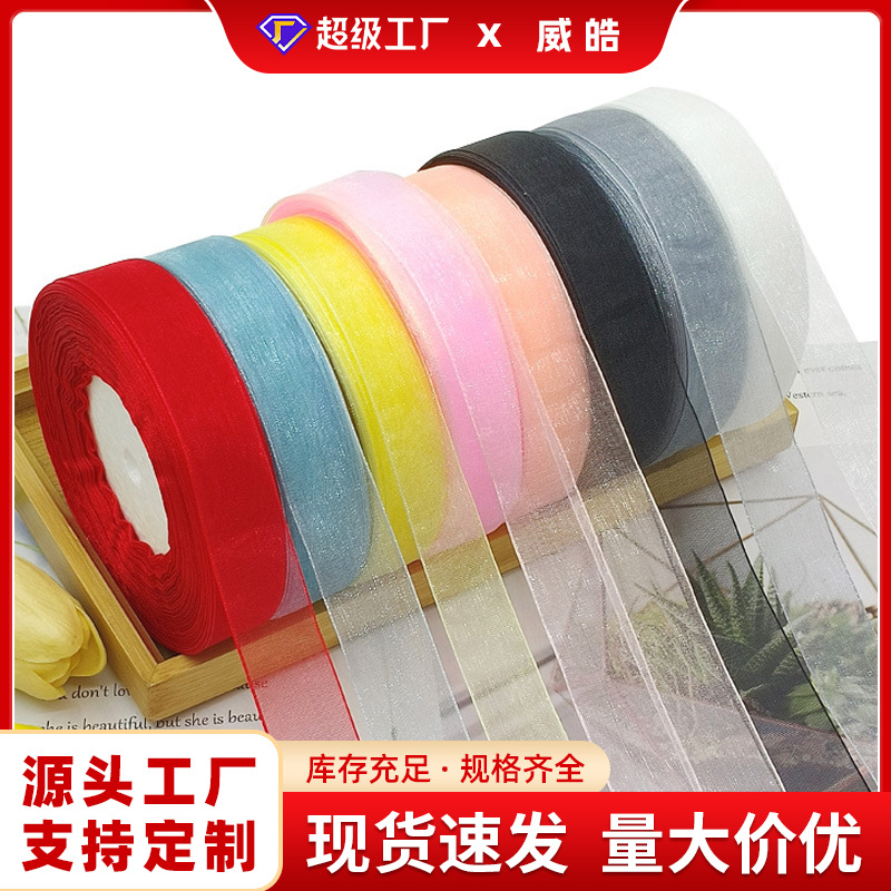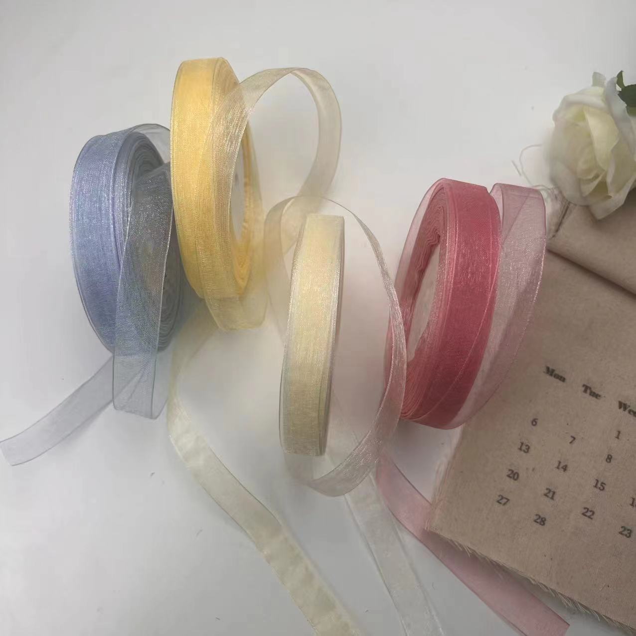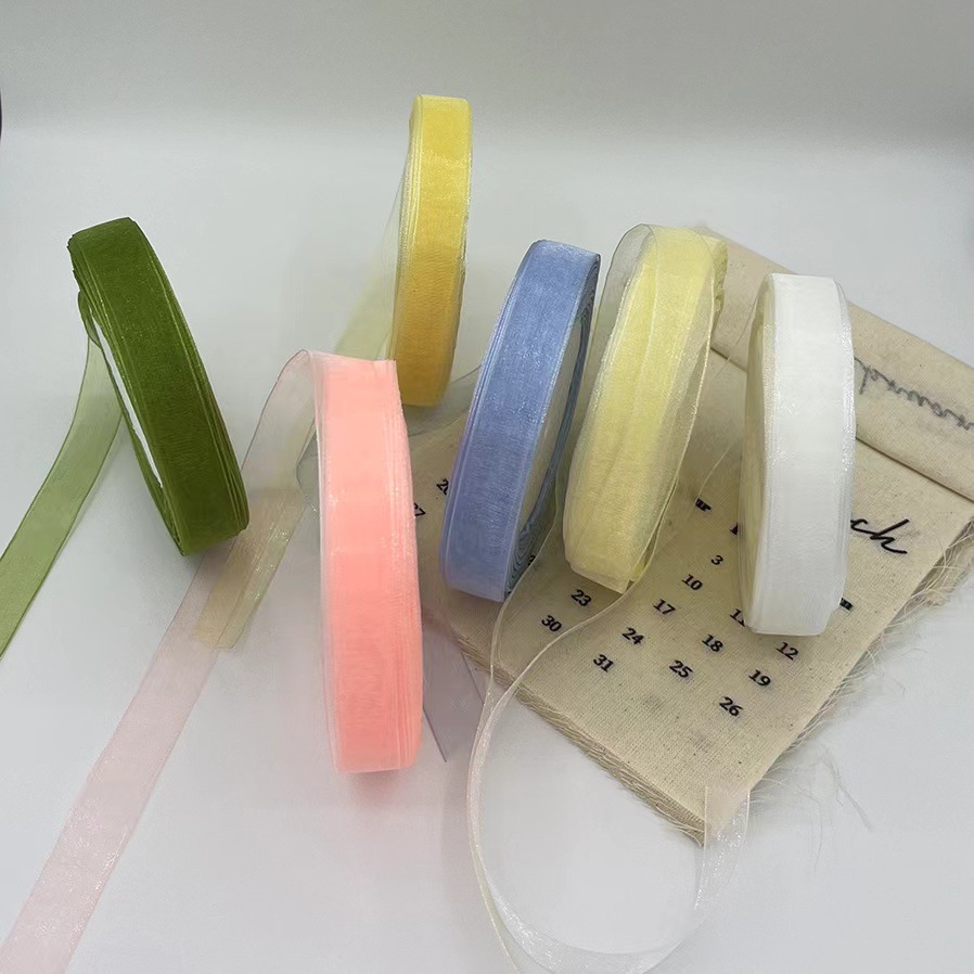 1cmミルクヤーン雪ガーゼ付きDIY手作り透明リボンリボンリボン花束ラッピングプレゼントリボンケーキ飾りリボン