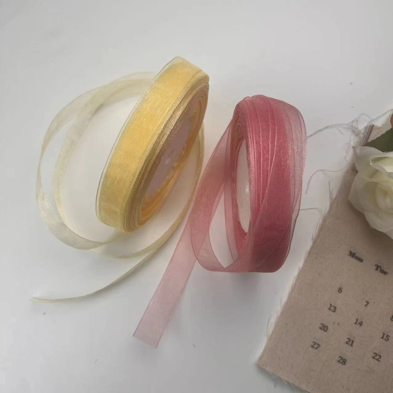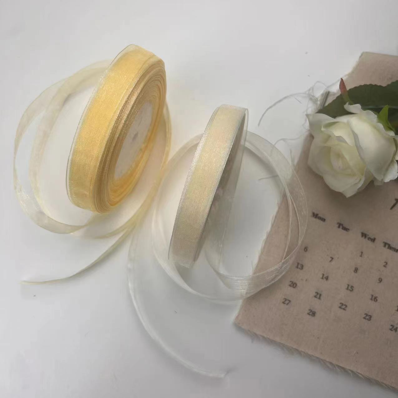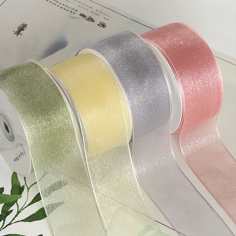 2cmクリーム透明風雪紡糸プレゼント包装リボンケーキDIY紐縛り花リボン