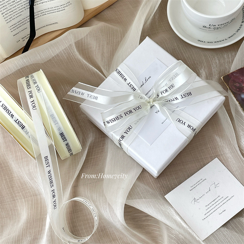 ins风英文雪纱丝带礼物装饰绳子鲜花扎带蝴蝶结绑带唯美奶油色系
