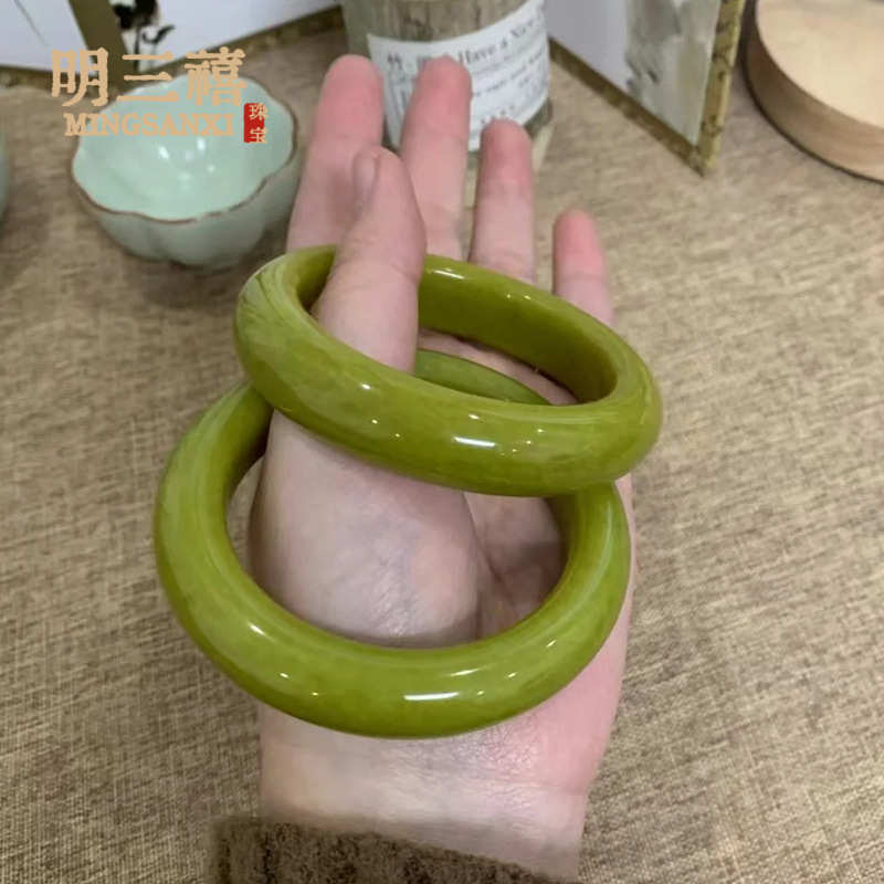 和田玉湖水緑古青料アフガニスタン玉ブレスレット天然晴水料復古円条玉ブレスレット