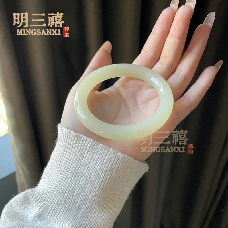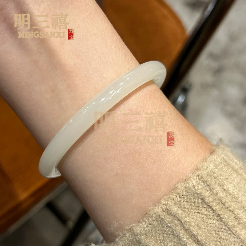 汗玉ブレスレット新疆白玉ブレスレット少女円ブレスレット細い腕輪玉羊脂白玉メーカー卸売り