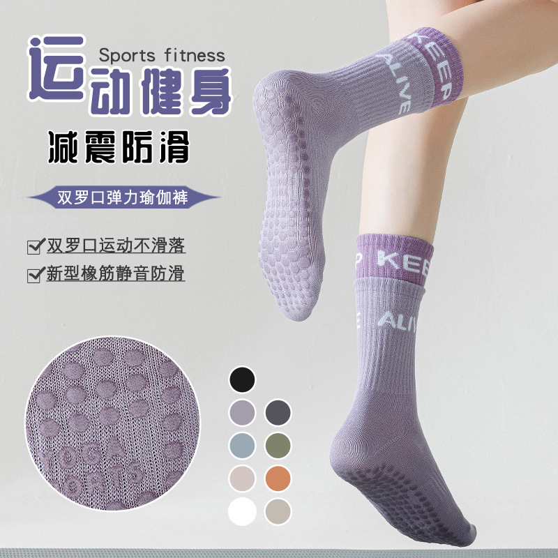 ヨガソックス女性のミッドチューブソックスプロフェッショナルノンスリップ屋内フィットネスランニングピラティススポーツ大人のフロアソックスシリコーン