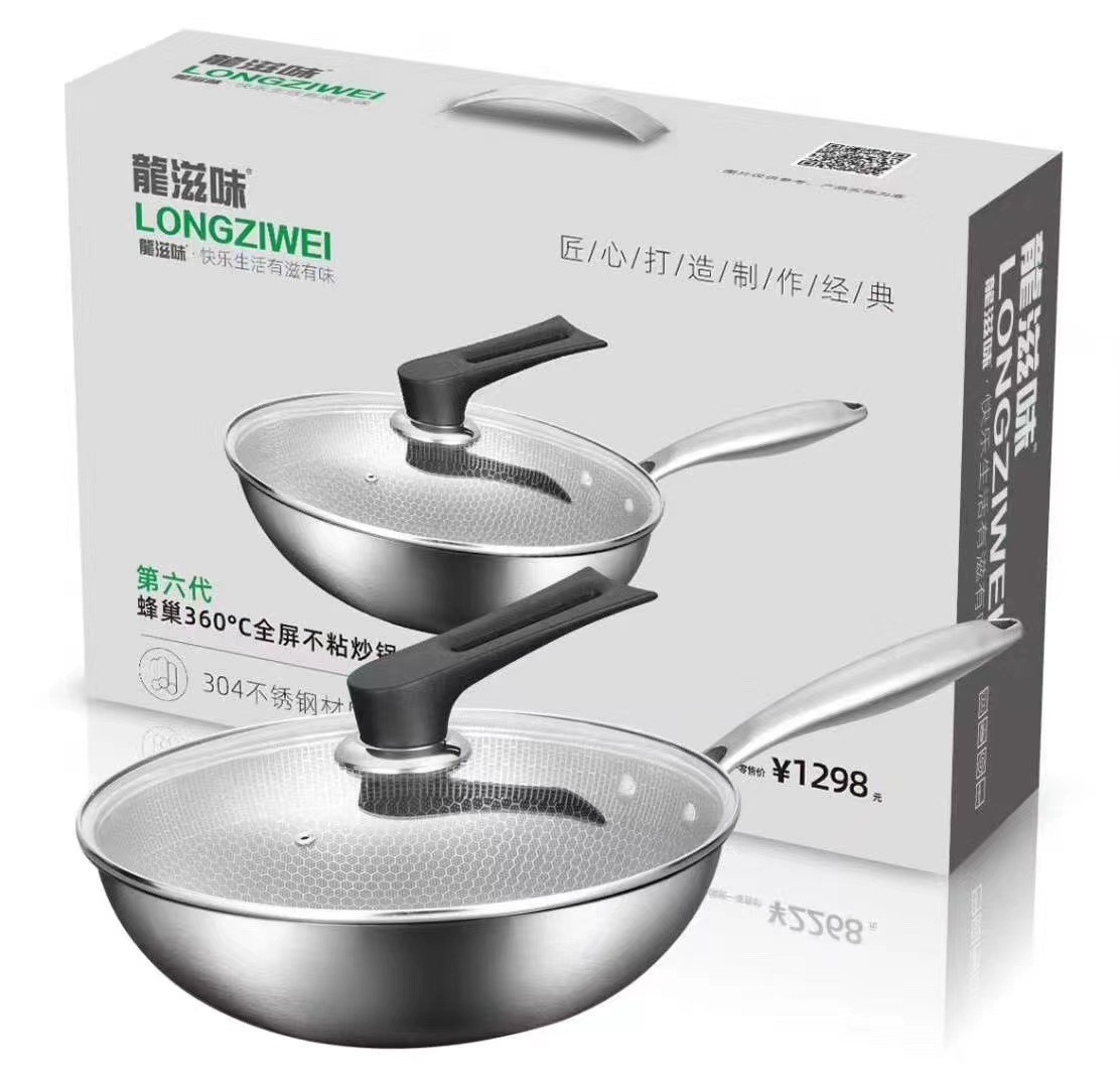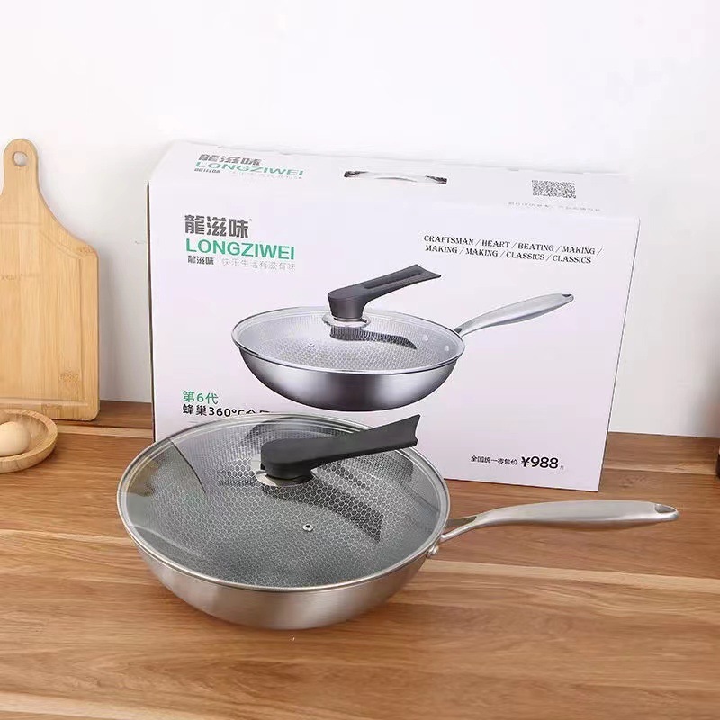 龍味セルラ炒め鍋304ステンレス鋼無コーティング炒め鍋家庭用全画面蜂の巣鍋フライパンフライパンフライパン