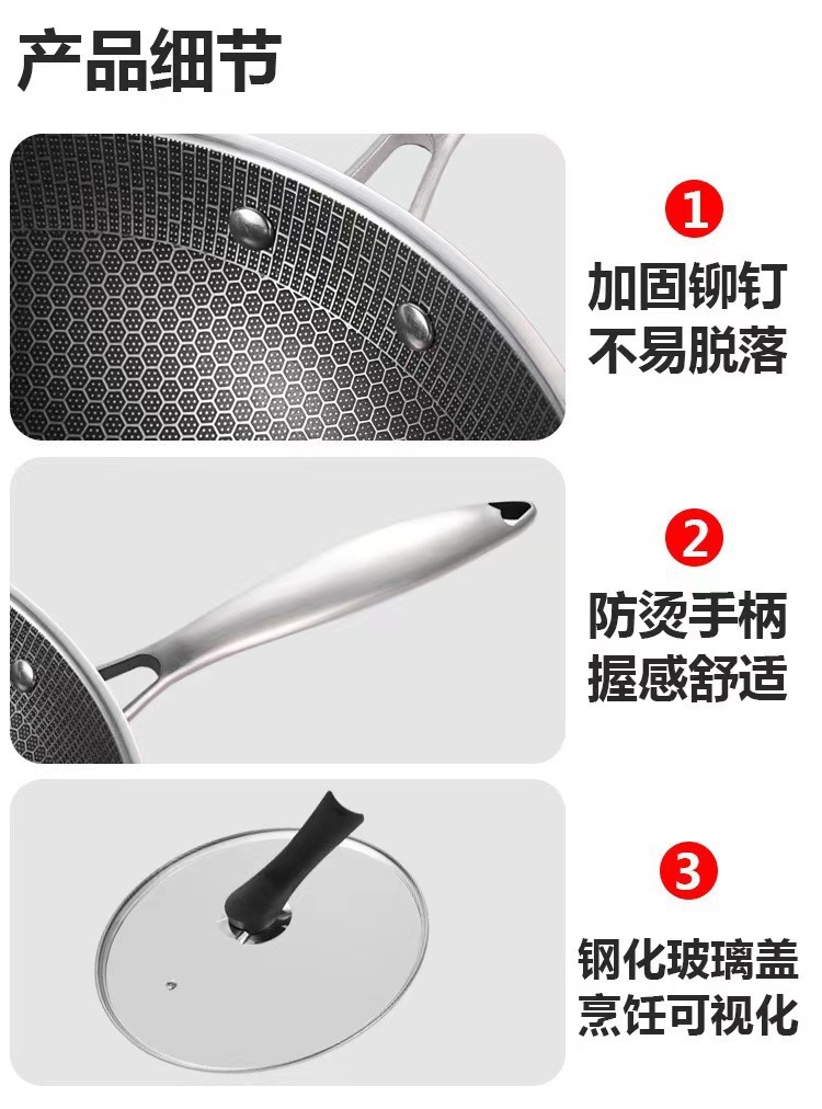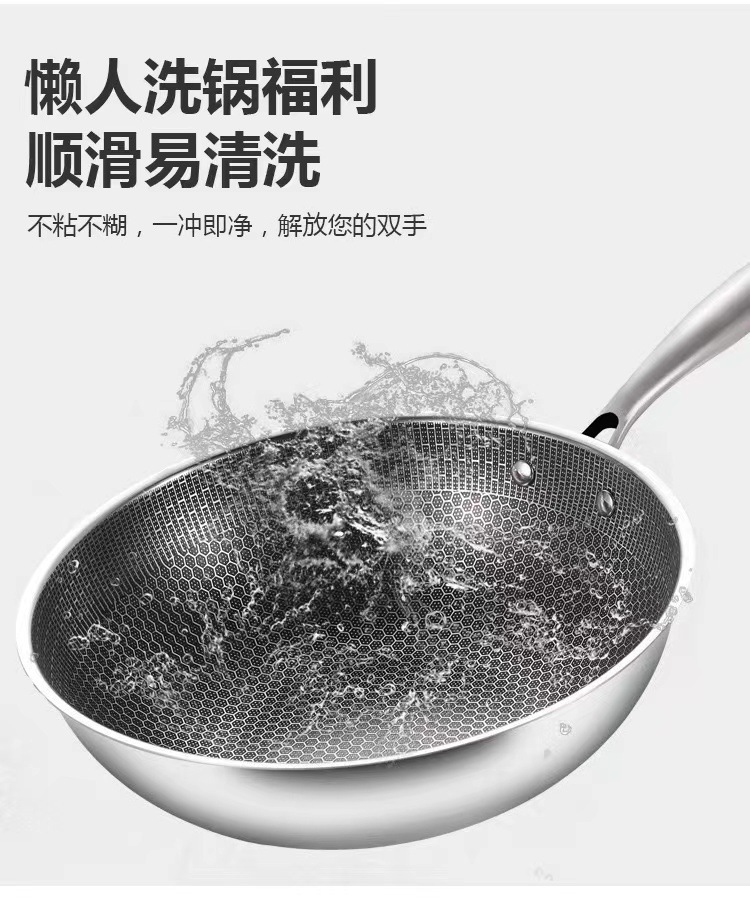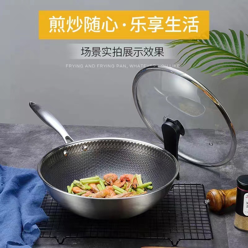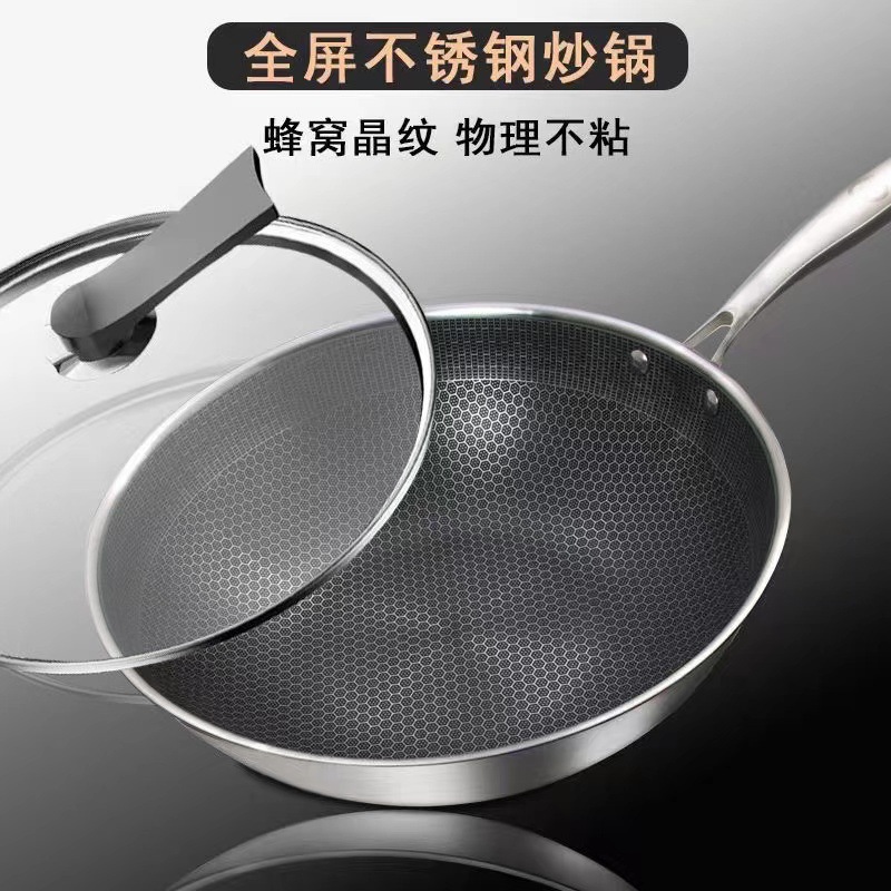 410 ステンレス鋼中華鍋フルスクリーンハニカムノンコーティングノンスティック調理鍋家庭用フライパンフライパン調理器具